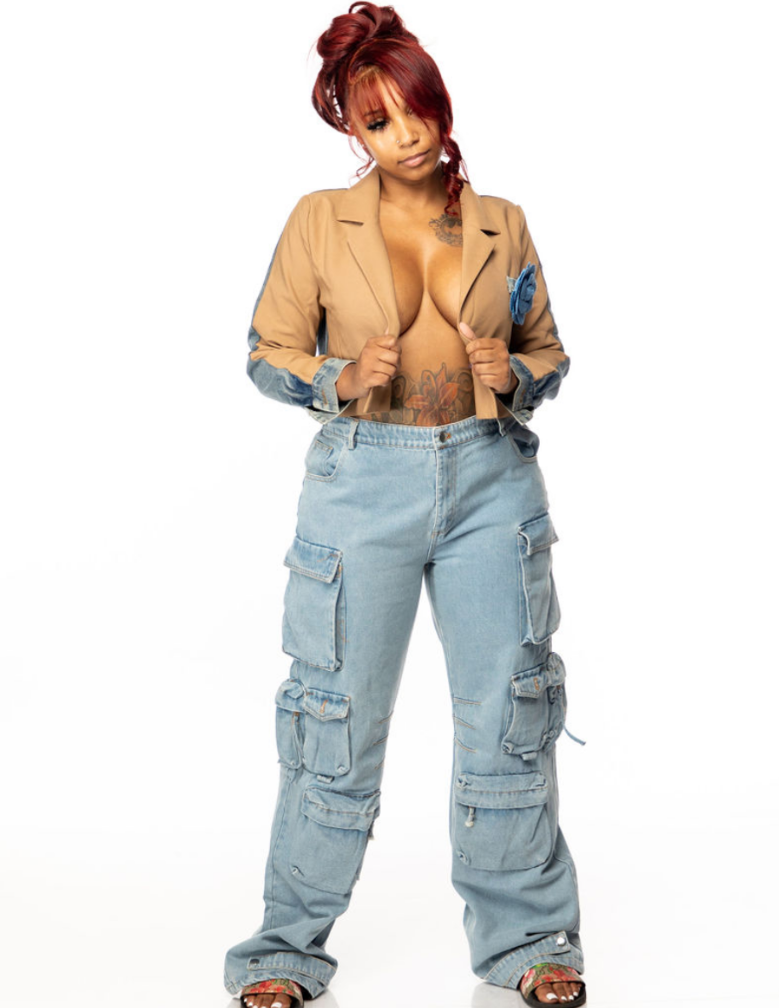 SNOB B’ CHIC Good Life Blazer is uniquely designed. It’s dressy in the front and denim on the back. Can be paired with any denim jeans, shorts, and skirts.