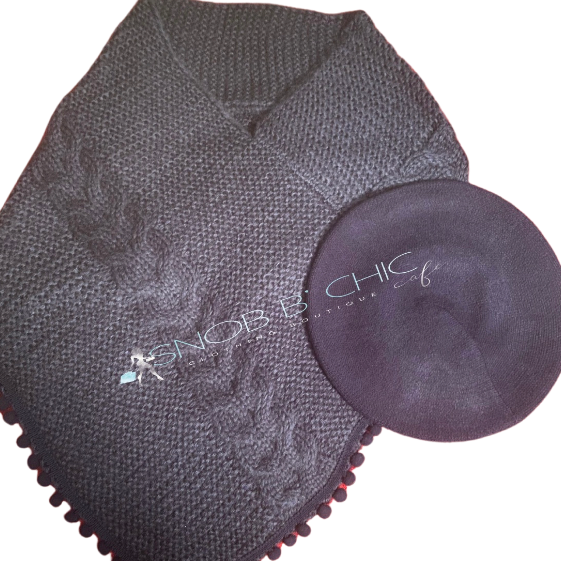 SNOB beanie beret hat/scarf set is perfect for those cold nights. Perfect with some denim jeans and a blazer.